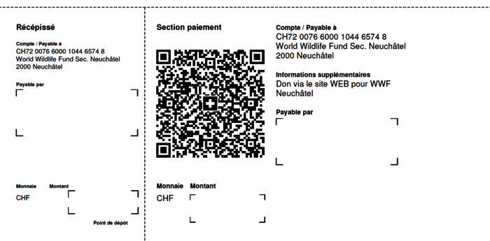 Nous sommes toujours ravi·es de recevoir un don qui soutiendra le travail du WWF Neuchâtel.